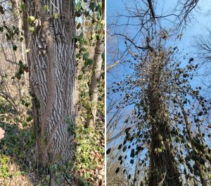 Overgrown vines on trees can damage the bark, crowd out sunlight light, and strangle the trunk stem.